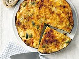 Reduce the heat to medium. Spread the egg mixture evenly in the pan. Cook, undisturbed, until a thin crust forms on the bottom, about 2 minutes. Run a rubber spatula around the edge to release the egg from the pan. Continue cooking until the bottom is golden, 2 to 3 more minutes. Sprinkle with the parmesan and paprika; transfer to the oven and bake until just set, 5 to 7 minutes. Remove from the oven, cover and let sit, 5 to 7 minutes. Cut into wedges and serve with the bread.