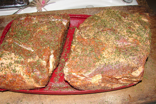 PLACE ROAST IN TUPPERWARE CONTAINER WITH LID AND IN FRIDGE OVER NIGHT.