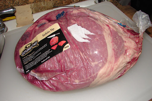2) TRIM FAT FROM BEEF, DISCARD, CUT BEEF INTO CHUNKS. SHAKE SEASONING ONTO MEAT COATING EVENLY ON ALL SIDES, PLACE INTO CROCK POT.
