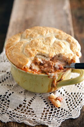 Spread the potato topping over the beef mixture. Bake until potato topping is lightly browned and the filling is bubbly along edges, 25–30 minutes. Let stand 5 minutes before serving.