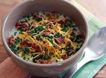 Remove from heat. Ladle 1 cup soup into each bowl. Top each serving with 2 tbsp cheese, remaining chives, and bacon.