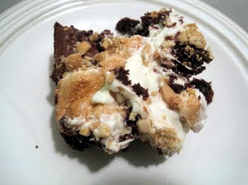 • I only had white chocolate chips so I used those, plus put the marshmallows on top and put back into the oven to toast it up a bit :).