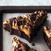 For a longer make ahead, bake brownies as directed through step 5. Wrap and freeze for up to 3 months. Before serving, top thawed brownies as directed in steps 6 and 7. Using the edges of the foil, lift the uncut brownies out of the pan. Cut into bars just before serving.