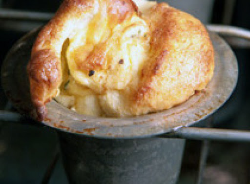 4. Bake the popovers until puffed and deep golden brown, about 40 minutes (do not open the door or they may collapse). Remove the popovers from the pans, sprinkle with the grated Gruyère and serve immediately.