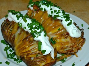 Hasselback Garlic potatoes w/ Bacon & Cheese