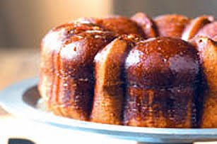 REMOVE cake from pan to serving plate. Pierce cake with fork or wooden skewer at 1/2-inch intervals. Pour warm Rum Sauce over cake just before serving.