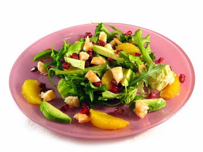 - En un bowl coloque las lechugas, los gajos de naranja, los aguacates y los camarones.