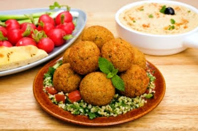 Put falafel into a pita pocket and top with salad, alfalfa sprouts, pickles and vegan mayo