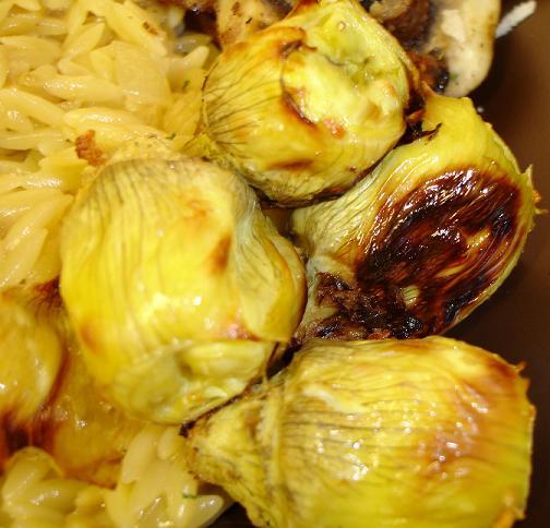 Can't believe it, but there's no other recipe like this on Recipezaar (unless I somehow missed it). These babies are so, so good. I roasted canned artichoke hearts in connection with another recipe I invented, and was so pleased with the way they came out even without the topping, so I'm posting a plain(er) version. If you want the topped version, go to recipe no. 144997. I found that roasting them enhanced the taste and texture - made them more tender on the inside:D One of these "throw it in the oven and ignore while you are fixing other parts of dinner" recipes!