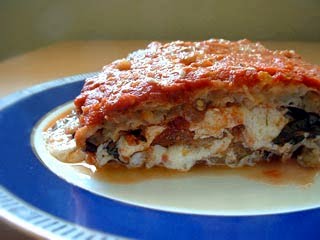 Heat oven to 375 degrees, lightly oil a 9" by 13" baking dish: set aside. Combine tomato sauce, mushrooms and half basil in a saucepan and bring to a boil.
