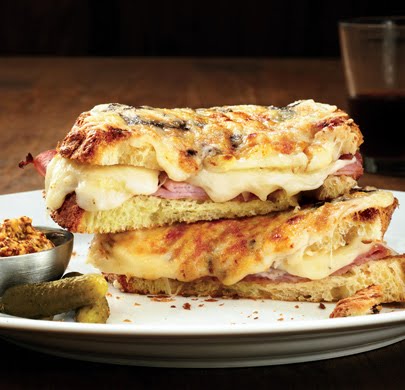Turn 6 bread slices over; top with ham and sliced cheese. Top with remaining bread slices, broiled side up. Press to compress.