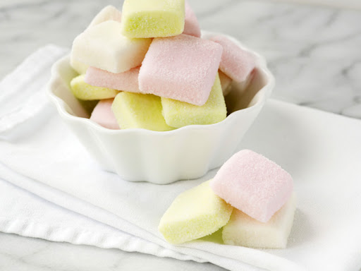 Shape each sugar mixture into a (4 inch x 1/2 inch height square.) Cut into 24 squares. Dip each square into sugar. Let dry for 2 hours.