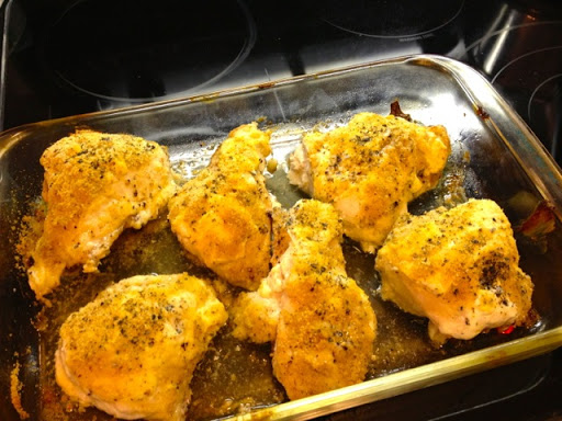 My slightly adapted version of OMG Chicken, posted by Heather M. and others. This is really good and comes together with no effort at all.