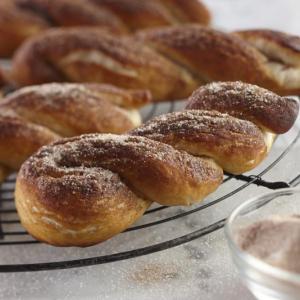 Brush tops of each twist with melted butter. Sprinkle generously with cinnamon sugar.