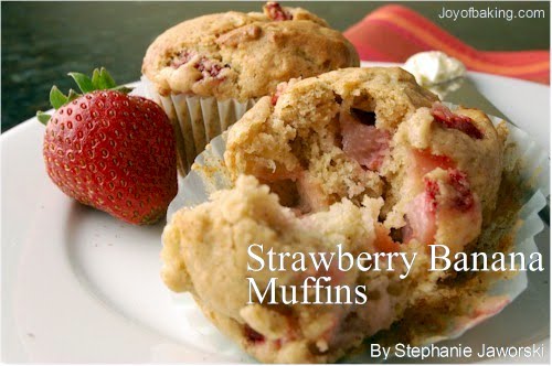 In another large bowl combine the flour, baking powder, baking soda, cinnamon, and salt. Gently fold in the berries, making sure they are coated with flour. This helps to prevent the berries from sinking during baking. Add the wet ingredients to the dry ingredients and stir only until the ingredients are just combined. Do not over mix the batter or tough muffins will result.