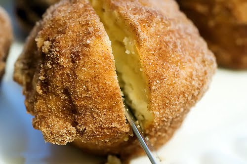 In a bowl, melt 2 sticks butter. In a separate bowl combine remaining sugar and cinnamon. Dip baked muffins in butter, coating thoroughly, then coat with cinnamon-sugar mixture.