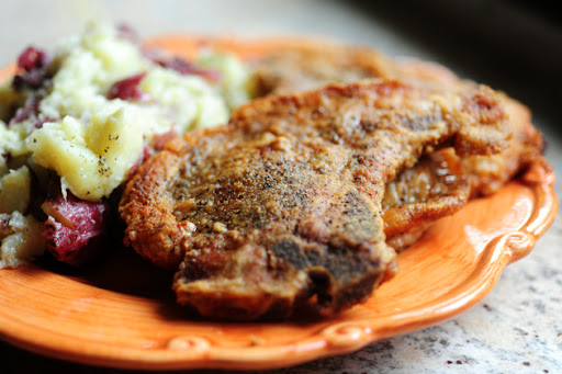 Rinse pork chops. (Yes, I rinse my pork chops. Please don’t be hatin’.) Salt and pepper both sides of the pork chops.