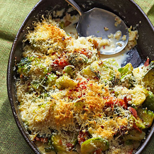 Brussels Sprouts Casserole with Pancetta & Asiago Cheese