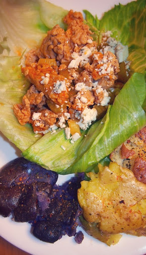 Place 1/4 cup of the buffalo chicken into a lettuce shell, then top with 1/2 tbsp of blue cheese crumbles.