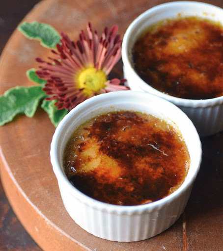 When ready to brûlée the pudding, lightly sprinkle the surface of each pudding with an even layer of sugar. Shake the ramekins from side to side to even out the layer. Use a kitchen torch to caramelize the sugar. I like to add a second layer of sugar after the first one has hardened. This gives a better "snap" and a more definitive caramelized taste. Let the finished puddings sit at least 5 minutes before serving so the sugar layer can cool and harden