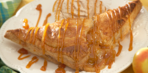 Preheat the oven to 375° F. In a microwave safe bowl, combine apples, butter and cinnamon; microwave for 3-4 minutes. The apples should be slightly tender. Microwave longer if necessary. Drain apples and toss with cookie crumbs and Marzetti Old Fashioned Caramel Dip. Lightly dust a work surface with flour. Roll puff pastry sheet into a 10 x 10 inch square. Cut into four squares. Lightly brush a ½-inch border around each square with cold water. Fill the center of each square with an equal amount of apples. Fold one corner over the fruit to the other corner to create a triangle. Press the dough together on both sides. Transfer to a baking sheet lined with parchment paper. With a fork, crimp the sides together. Repeat the process with remaining apples and dough. Lightly brush turnovers with egg glaze. With a small knife, make vent in the top of each turnover. Bake 20-24 minutes or until golden brown. In a microwave safe container, microwave Marzetti Old Fashioned Caramel Dip for 10-30 seconds, stirring every 10 seconds. Transfer warm dip to a resealable plastic bag. Snip the end off one of the corners of the bag and drizzle the top with the warm dip. Serve with ice cream or whipped cream.