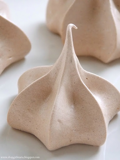 2. Next, pour the mixture into your electric mixer bowl, and mix on high speed using the whisk attachment, until stiff, glossy peaks form, for about 10 minutes. Then, add in the vanilla and sift in the cocoa powder, fold them in very carefully so the meringue doesn't deflate.