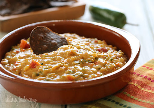 Add the drained tomatoes, cilantro, lime juice, chili powder, cumin, salt, and pepper. Remove from heat and add the cheese; stir until it melts completely. Serve immediately.