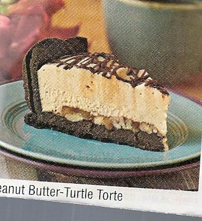 Arrange pecans in an even layer on chocolate layer in pan. Spread butterscotch-caramel topping evenly over pecans. startng from center, leaving a 1-inch border around outer edge of crust. (Be sure to leave his border; if not, the caramel will ooze out of the torte). Chill at least 5 minutes.