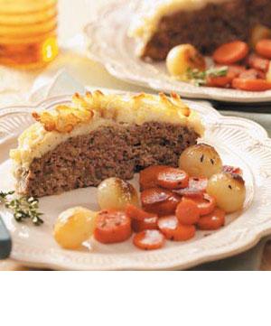 Using a large star tip, pipe mashed potatoes onto meat loaf. Bake 45 minutes longer or until a meat thermometer reads 160° and meat is no longer pink.