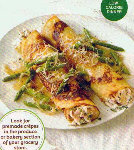 Place the crepes, seam-side down, in the baking dish. Cover with foil and bake until the filling is hot, about15 minutes,