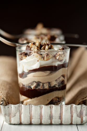 1. Place about 1 chopped Tagalong® into the bottom of each mini parfait glass. Pipe or spoon in a layer of peanut butter mousse. Add a layer of chocolate fudge sauce and repeat layers. Top with whipped cream and finish with chopped Tagalong® cookies.