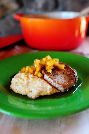 Serve pork chops on top of a generous helping of Creamy Cheese Grits (mashed potatoes are good, too) and spoon the apple-maple sauce over the top, allowing the liquid to drip over the grits.