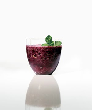 1.In a blender, puree the blueberries, lemonade, mint, confectioners’ sugar, and 3 cups ice until smooth.