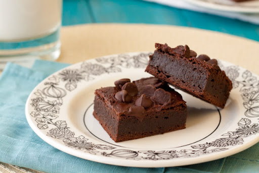 Transfer batter into a well greased 8×8 inch Pyrex baking dish and sprinkle with chocolate chips.