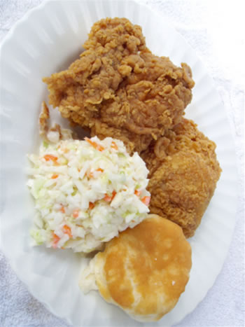 Dip each chicken piece in the egg and milk, and then coat it in the dry flour mixture.