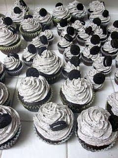 Oreo Cookie Crumbs (12-14 whole Oreo's and the cookie tops from cupcakes, pulse in food processor until it is fine crumbs, or I just put them in a Ziploc back and crushed them myself with something heavy because I don't have a food processor. The smaller pieces would have been better for piping the frosting but that's okay.)