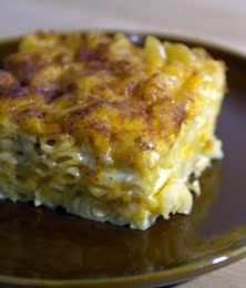 Preheat oven to 375 degrees. Generously butter a 13-by-9-inch glass baking dish; set aside. Bring a large pot of water to a boil; add salt and macaroni. Cook until al dente according to package directions. Drain, and return to pot. Add butter, and toss until pasta is coated and butter has melted; set aside.