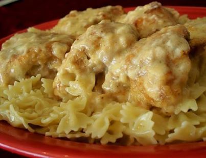 Directions: Dredge the chicken pieces in the flour and spices and arrange skin side up in a baking dish. Mix the cream and water and pour over the chicken. Bake at 350* for 1 1/2 hours or until the skin is golden brown.