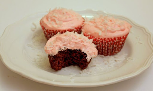 13. Top cooled cupcakes with frosting, and sprinkle with coconut to serve.
