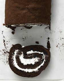 6. Roll into log and cool: While the sheet cake is still warm, gently roll, starting from one short side, into a log, incorporating the kitchen towel. Let the cake cool completely, rolled. (This will give the cake a "shape memory," so it will be easier to roll again with filling.)