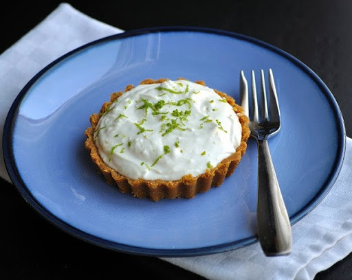 1. Grease 4 tartlet pans (4 1/2") with removable bases. Process the graham crackers until they feel like fine breadcrumbs.