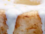 Using a spatula, loosen the cake around the sides and middle. Release the cake and place on a serving plate. Cut into slices and drizzle with the sauce. Garnish with lemon zest and mint sprigs.