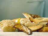 Peel the potatoes and cut them into chips (that is, fries) about the size of your index finger. Put the potatoes in a fryer basket and lower into the oil. Fry the chips for 2 to 3 minutes; they should not be crisp or fully cooked at this point. Remove the chips to a paper towel-lined platter to drain.