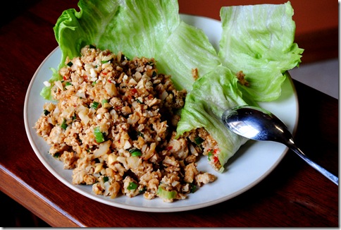 • 10-12 large outer lettuce leaves, rinsed and patted dry
