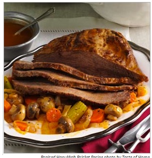 Cut brisket diagonally across the grain into thin slices. Serve with vegetables and pan juices.