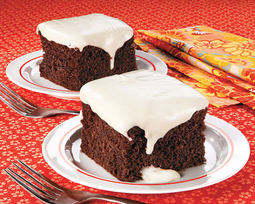 Preheat oven to 350°. In a large bowl, sift together the flour, COCOA and salt. In a separate bowl, combine the sugar, oil, buttermilk and egg and mix well. Add the dry ingredients to the egg mixture and beat well. Add the baking soda and then add the boiling water. Mix well and then stir in the VANILLA. The batter will be very thin. Pour into a greased and floured 9x13 cake pan and bake at 350° for 40-45 minutes. Let cool thoroughly before frosting. We used our favorite cream cheese frosting for this cake. To prepare the frosting, cream together the cream cheese and butter until fluffy. Add the VANILLA, sift in the powdered sugar and beat until well blended.