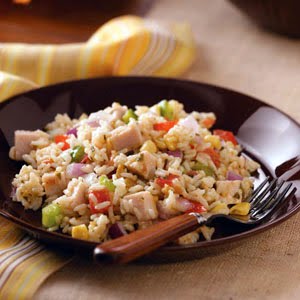 2. Combine liquid, broth, garlic powder, and pepper in a med saucepan and bring to a boil. Stir in mushrroms and remaining ingredients. Cover, reduce heat and simmer 20-25 min until rice is tender.