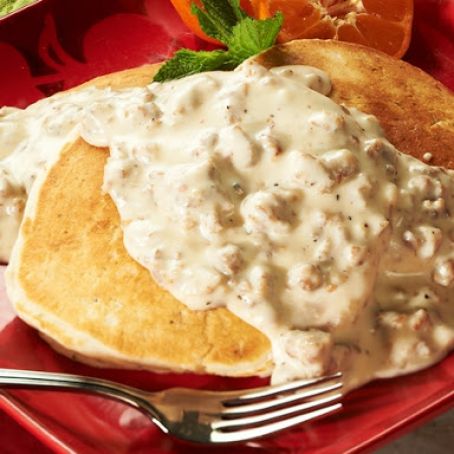 Buttermilk Biscuit Pancakes with Sausage Gravy