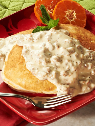 Tip: Use this pancake recipe to make waffles, if you prefer. The holes in the waffles trap that delicious gravy, making each bite that much more flavorful.