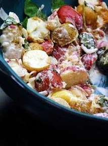 2. Bring 1 cup slightly salted water to boil in a large nonstick skillet. Add potatoes and beans, cover and cook 5-7 mins. just until the potatoes are fork-tender (be careful not to overcook or potatoes will fall apart). Drain potatoes and beans.